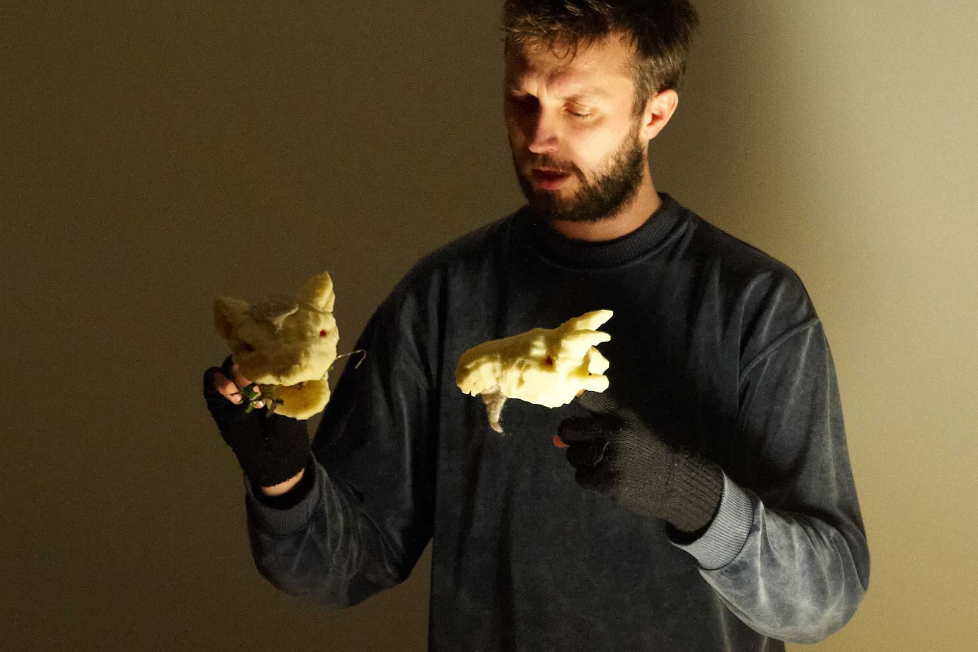 Punkové loutkové divadlo. Mezinárodně úspěšná koláž Červené Karkulky a pohádky O třech kůzlátkách, odehrávající se uprostřed skandinávské zimy a polární noci. Haůůůůů!!!