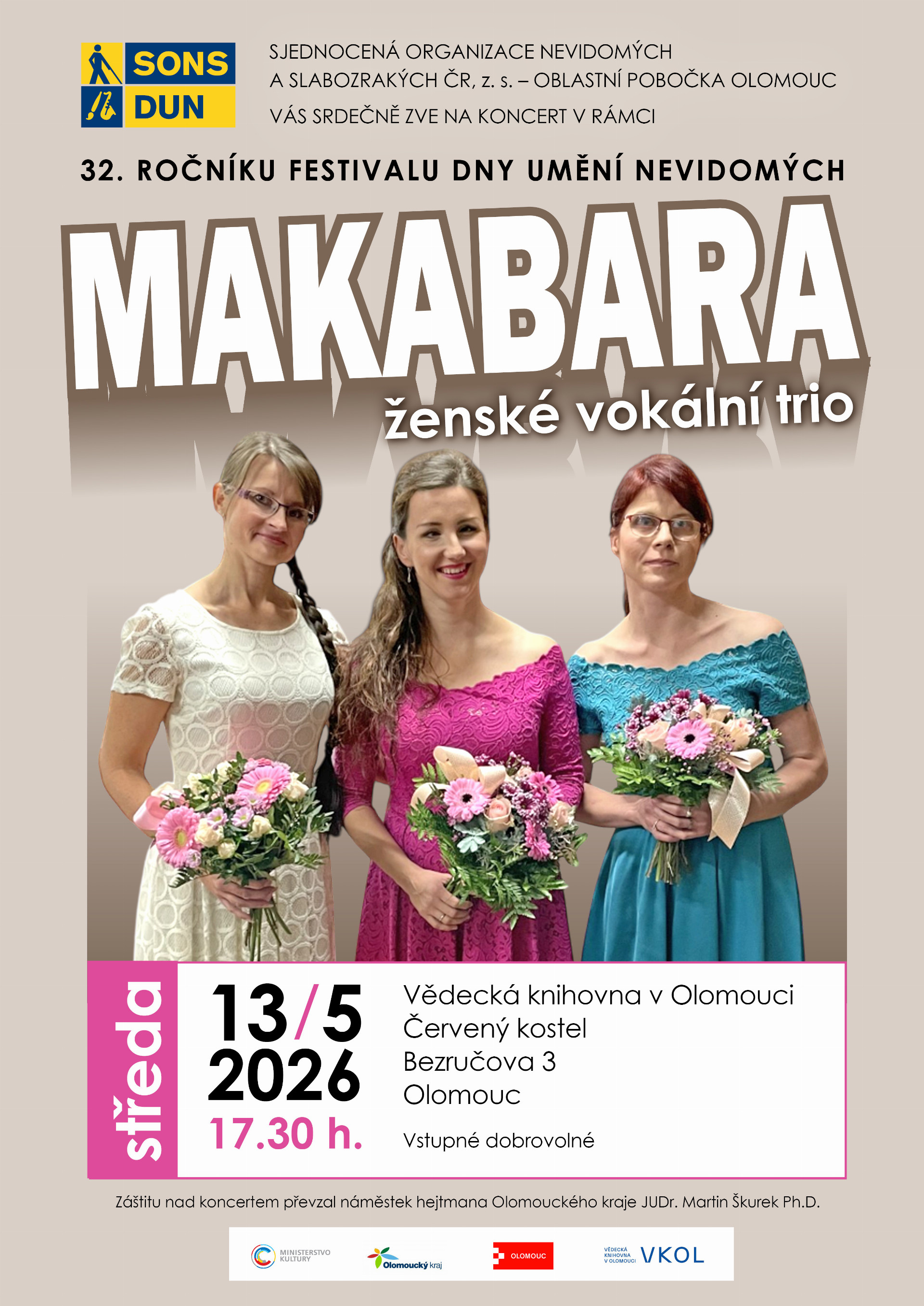 Koncert v rámci festivalu DUN probíhá za finanční podpory Olomouckého kraje a Ministerstva kultury ČR. Záštitu nad tímto koncertem převzal náměstek hejtmana Olomouckého kraje JUDr. Martin Škurek, Ph.D.